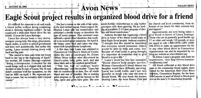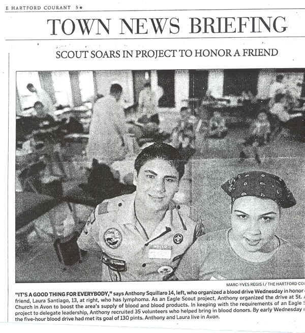 The following are pictures that were taken at the Bloodmobile in Laura's honor that was organized by her friend Anthony Squillaro.